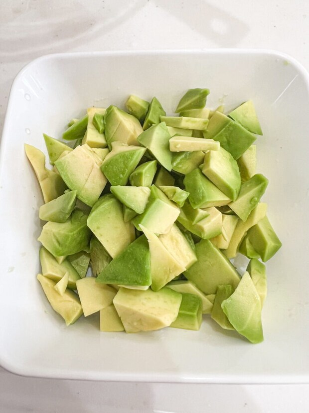 ⑤ 粗熱を取っている間にアボカドをダイス状に切る。