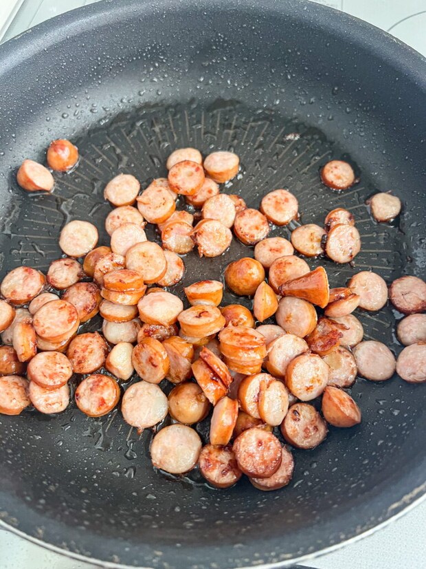 ③ ウインナーを小口切りにし、炒める。