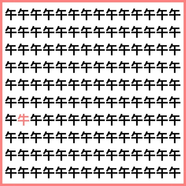 たくさんの「午」の中に、1文字だけ違う漢字が混ざっています。