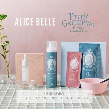 大阪の化粧品開発会社・KBCが手がけるスキンケアブランド「ALICE BELLE」は、世界中から話題のビューティープロダクトが集まるセレクトショップ「フルーツギャザリング」の二子玉川ライズ店に、10月1日(火)~31日(金)の期間限定で出展する。