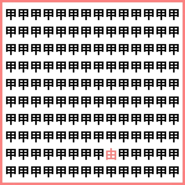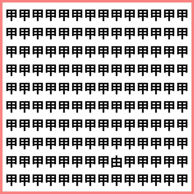 たくさんの「甲」の中に、1文字だけ違う漢字が混ざっています。