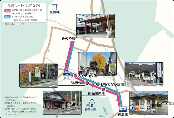 新たな観光ルートを運行する「ミコぴょん号」を利用して、弥彦村の魅力を楽しもう。