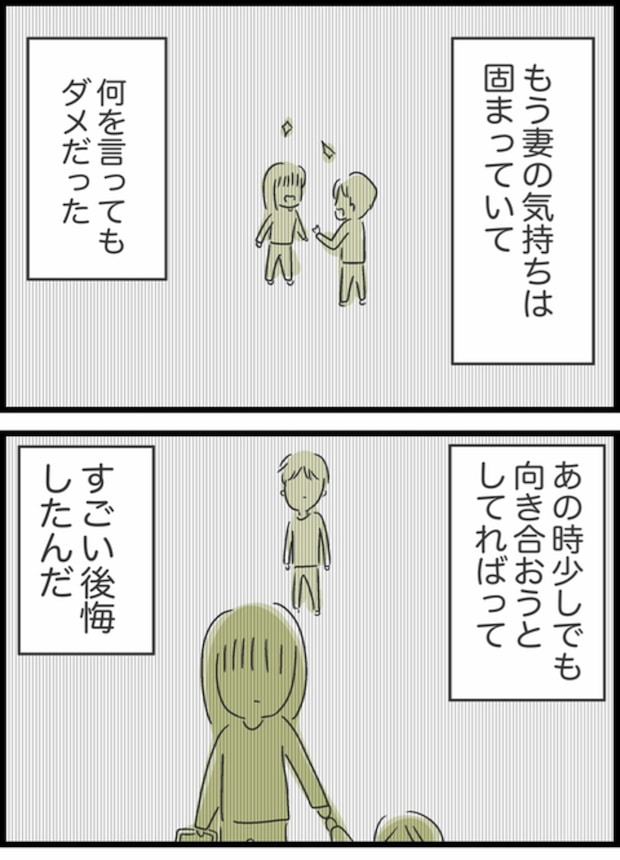 ようこの気持ちを理解しようと歩み寄るしょうた。そしてようこも、少しずつ相手を信じ直す努力を重ね、今では落ち着いた日々を取り戻しつつあります。ただ、ようこの引き出しには今も離婚届が残されています。それは、自分の気持ちに嘘をつかないための「お守り」だそうです。