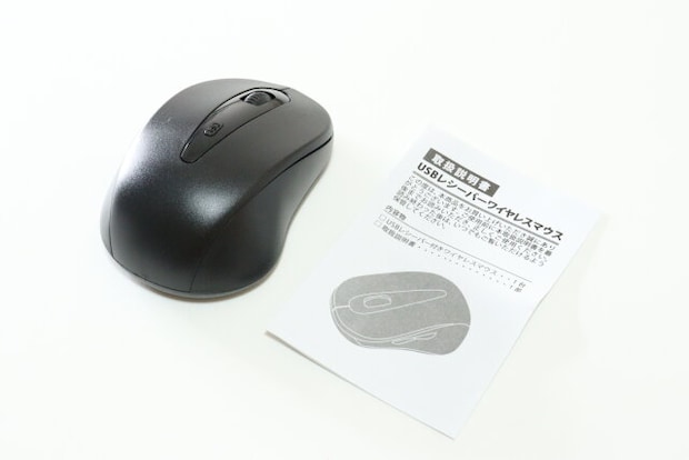今回ご紹介するのは、こちらの『USBレシーバー ワイヤレスマウス』という商品。USBレシーバーをPCのUSBポートに挿して使うタイプのワイヤレスマウスです。