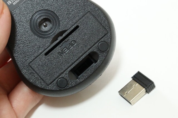 USBレシーバーを収納する部分があるのは嬉しいポイント。