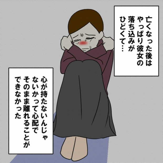 E原さんは、元カノが飼っていた猫を彼女と一緒に看取りました。その猫は元カノの支えだったそうで、亡くなった後の彼女の落ち込んだ姿を見てE原さんは元カノの側を離れられなくなったのです。