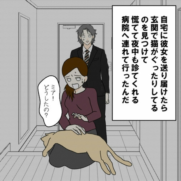 E原さんは、元カノの猫を病院に連れていき、自分は名古屋に出張へ。そして元カノの様子が気になり出張から戻っても家に帰らずに元カノの家を訪ねたのだといいます。
