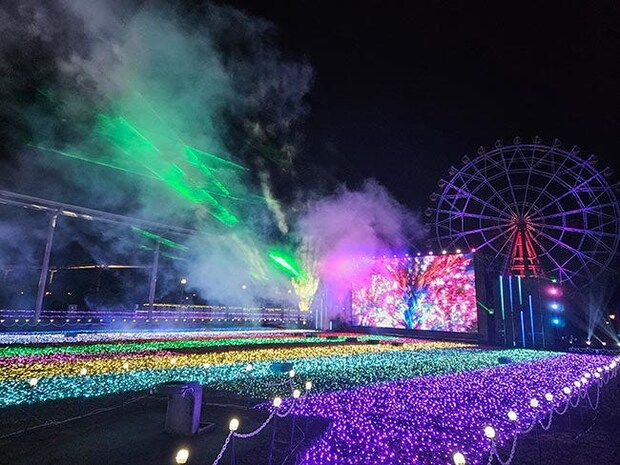 また、ハートフルガーデン内には、2,000㎡を超える丘状の花壇「キャンバスガーデン」も。昨年スタートした「イルミネーションマッピング」を今年も実施し、光のアート演出を鑑賞できる。約70,000球ものイルミネーションを1球ごとにデジタル制御しており、アニメーション、グラフィックなどの映像効果や、多彩な配色パターンによるグラデーション演出などが楽しめるのだそう。