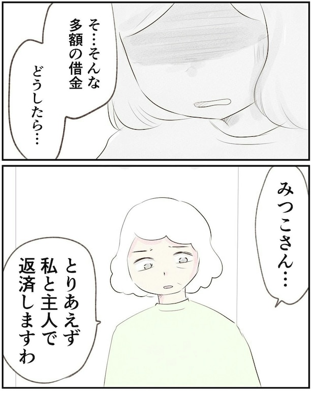 みつこさんは断り切れず、夫と借金を返す道を選んでしまいます。夫婦とはいえ、夫が作った借金を返済しなくてはいけないなんて、納得できませんよね。