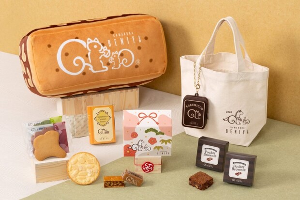 全4種の「新春福袋2026」のうち、公式オンラインショップでは2種を抽選販売する。取り扱い商品は、シンボルキャラクター「リスくん」の焼き目が付いたパンケーキを作れるミニフライパンを含む福袋「もぐもぐ」と、クルミッ子を模したクッションや「クルミッ子キャラメルソース」などが入った「ふわふわ」の2種。それぞれに1人1回ずつ応募できる。応募には公式オンラインショップの会員登録が必要となる。