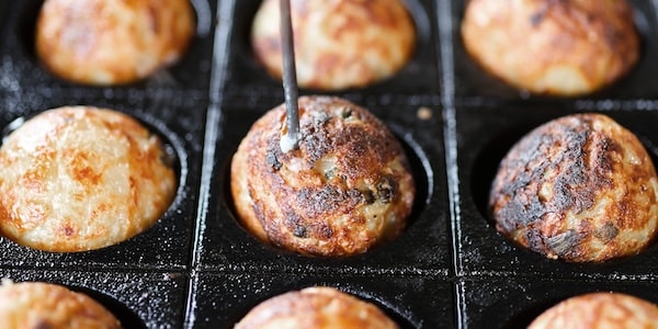 1852年創業の及源鋳造は、鉄鋳物ならではの焼き力で、感動の“外カリっ中とろっ”食感の、大玉でまんまるな本格たこ焼きが焼ける鉄のたこ焼器を開発。