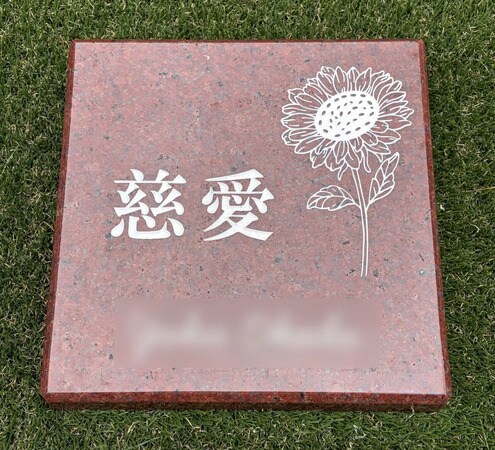 例えば、「ひまわりのモチーフを入れる」「『慈愛』という言葉を入れる」「故人の名前をローマ字で表記する」という要望を持っていた人は、案①をベースにした墓石を制作。