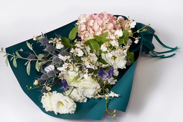 フラワーブランド「MUKU」の名前の由来は、「白無垢」および「手を加えていない原点」を意味する無垢。