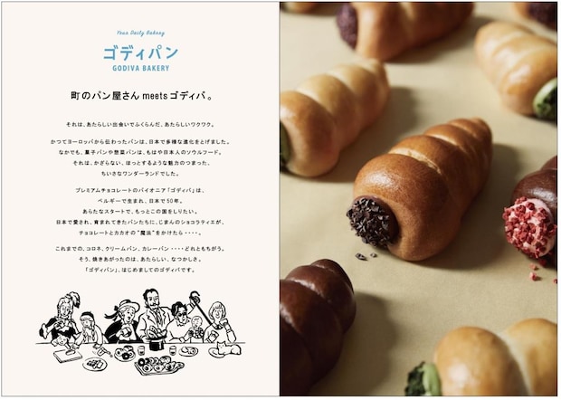 『ゴディパン』は、チョコレートブランド「GODIVA(ゴディバ)」のベーカリーブランド。“町のパン屋さん meets GODIVA”をコンセプトに、日常の中でゴディバが楽しめる身近なベーカリーブランドとして展開している。「日本で進化を遂げた菓子パン、惣菜パンを、ショコラティエの新たな発想で再解釈し、なつかしさと新しさの融合を提案する」という。