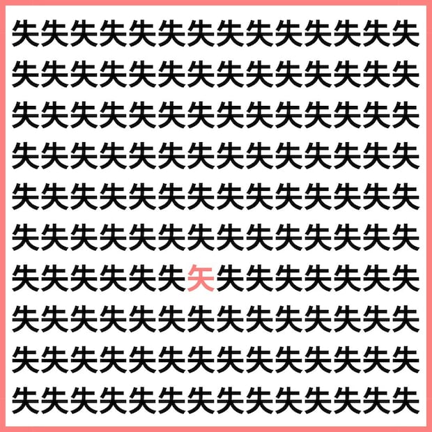 たくさんの「失」の中に、1文字だけ違う漢字が混ざっています。