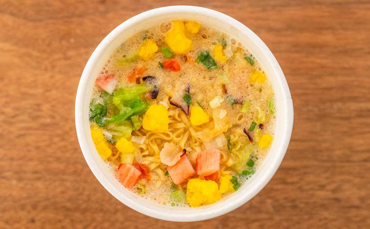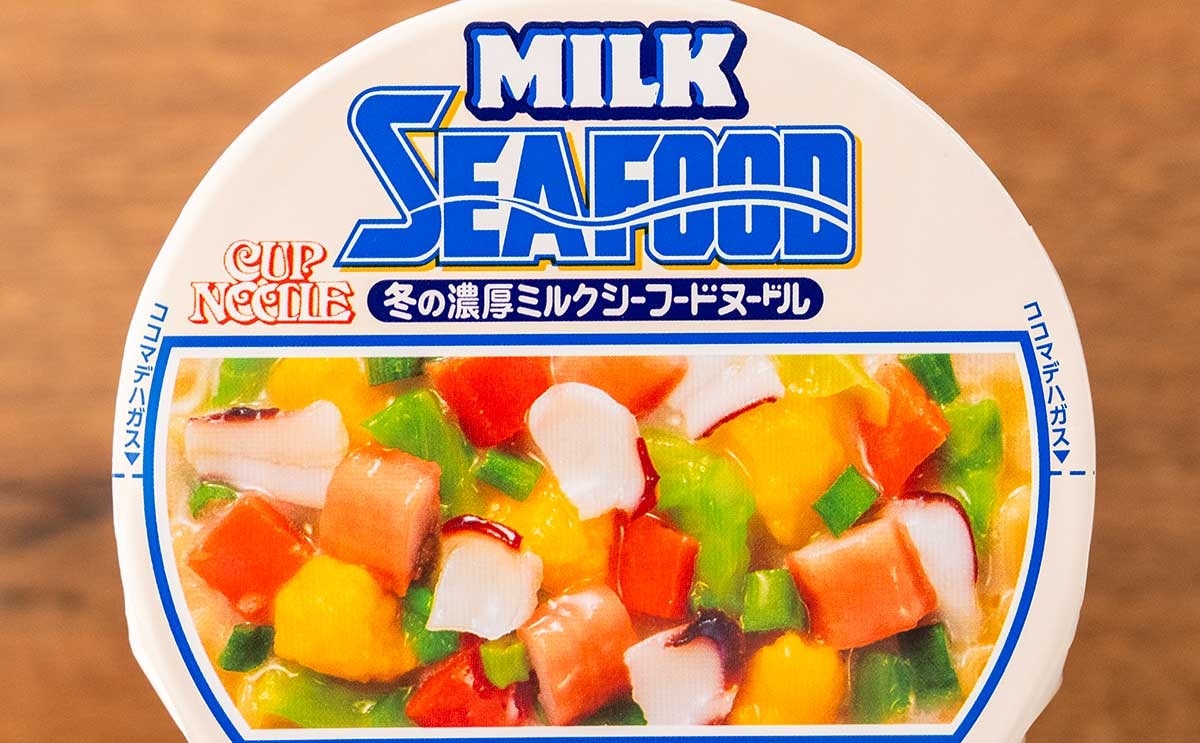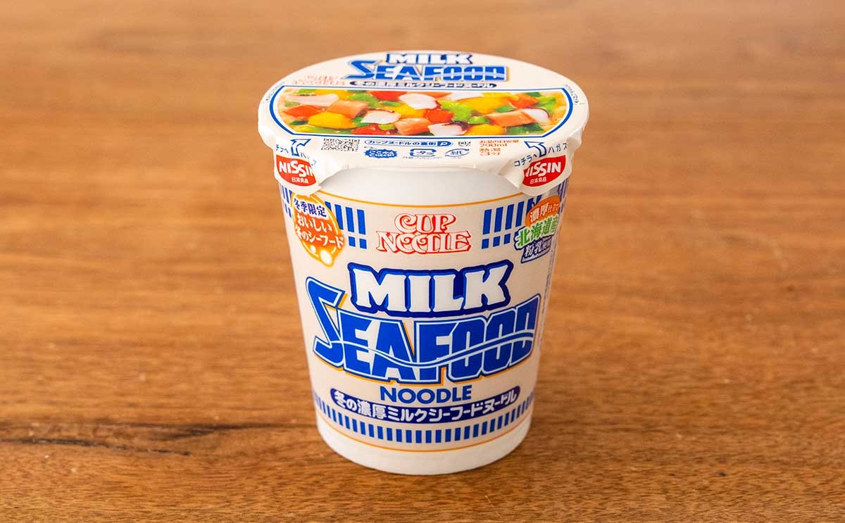 今回登場した商品は、魚介と豚骨のうまみをきかせた「シーフードヌードル」のスープをベースに、北海道産の粉乳を加えることで、甘みとコク深さのあるクリーミーで濃厚な味わいが特長となっています。