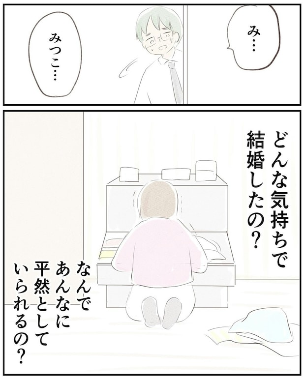 結婚前に1000万円もの借金があった夫。ウソにウソを重ね、今まで平然と一緒に生活していたことに、怒りと悲しみがこみ上げます。
