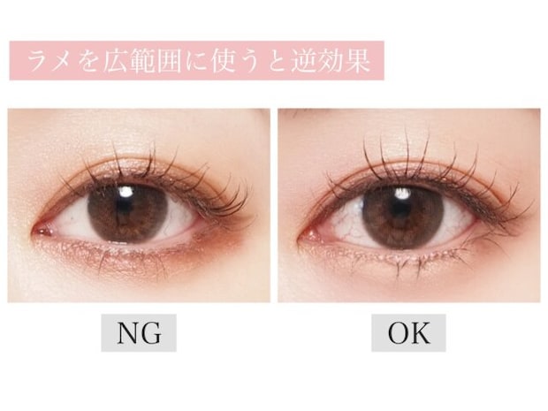 でも実は逆で、年齢を重ねた目元にラメを広範囲に広げてしまうと、小ジワやまぶたのハリのなさが目立ってしまい老けて見えてしまうんです。