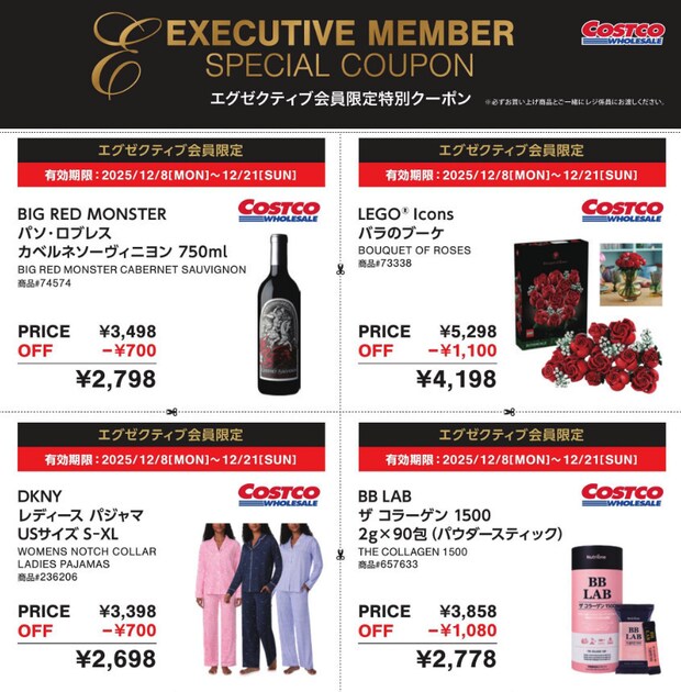 【エグゼクティブ会員向け】12/8~12/21コストコ最新セール・割引情報