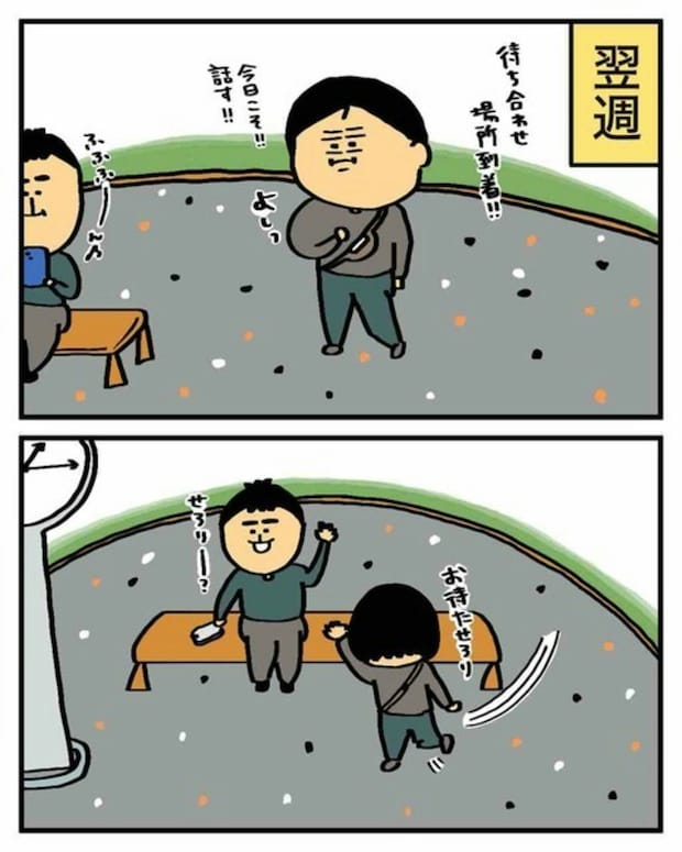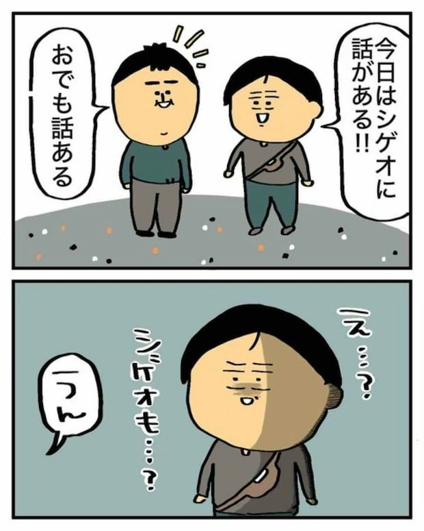シゲオさんからも話があると言われ、固まるエクボさん。瞬時にマイナス思考が発動してしまいます。
