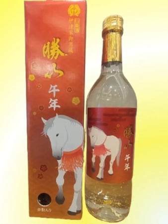 「勝山 純米大吟醸 午年」は、お酒に華やかに金粉を入れ、運気上昇を祈願したお酒。