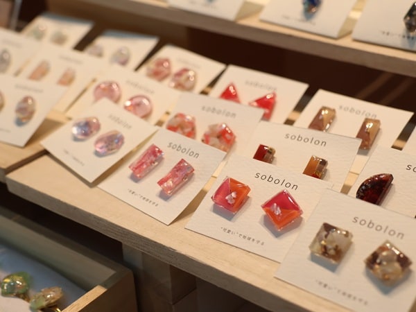 2024年に続き、オーナメント製作ワークショップの協力事業者「One Earth(sobolon)」も出展。海洋プラスチックごみを再利用して製作したジュエリーが販売されている。