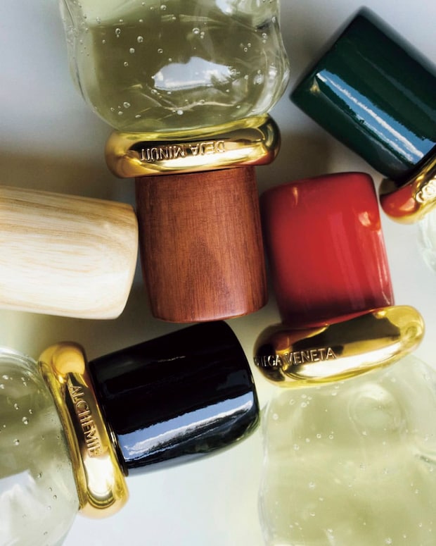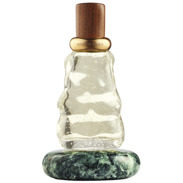 さらに“触感”へのこだわり、五感を通して世界を感じるというブランドの哲学を体現しているのが、思わず触れたくなるフォルムのガラスボトル。これはヴェネツィアの干潟やボッテガ・ヴェネタのレザーの柔らかさが着想源。ムラーノ島の吹きガラス技術を再現した気泡を含み、ひとつとして同じものはないのだそう! 香りごとに異なる色合いで仕上げられた木製のキャップ、モダンな輝きを添えるメタリックなリング、大理石の台座……、細部にまでこだわったデザインは、まるでアートピースのよう。実はこれEUなどでは既に展開があったものの、日本での発売は今回が初。ホリデーギフトにも最適!