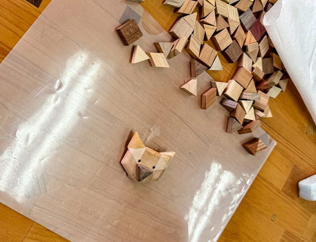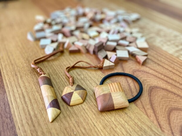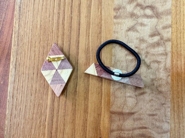 寄木細工は、組み合わせが決まったら、接着→削り→部品付け→ワックス塗り→完成!という流れになります。