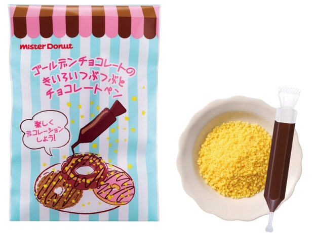 自宅で好きなドーナツをデコレーションして楽しめるキット。人気ドーナツ「ゴールデンチョコレート」にトッピングしている黄色のつぶつぶが福袋グッズとして登場する。
