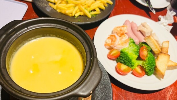 ガストロスケゴロウは、ろうそくの灯りがゆらぐ少し暗めの店内で、雰囲気はしっかり大人っぽいのに、お料理は子どもともシェアしやすいラインナップ。ピザやチーズフォンデュ、パスタなど、どれも本当においしくて、家族全員大満足でした。