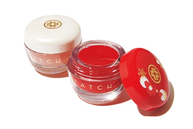 右から:レッドカメリアオイルを配合。はんなり色づくタイプ。タッチャ キッス リップ マスク レッドカメリア※限定品、桃の種のエキスをはじめとする美容オイルを凝縮。ナイトマスクとして就寝前に。同キッス リップ マスク 各¥3,500(共にタッチャ ジャパン)