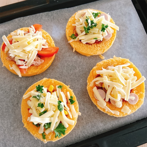 ピザまんのどストレートなアレンジレシピ「ピザまんdeピザ」。そのまんまだと侮るなかれ。ピザまんの新しい一面に気づきますよ。ぜひお試しください♪