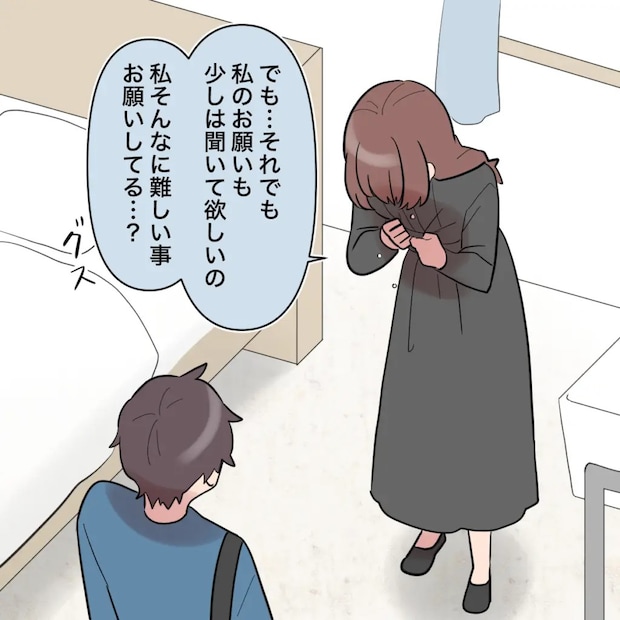 そんな事情があったとしても、やっぱり家族を優先してほしい。「それでも私のお願いも少しは聞いて欲しいの、私そんなに難しい事お願いしてる?」私は泣きながら、必死に訴えました。