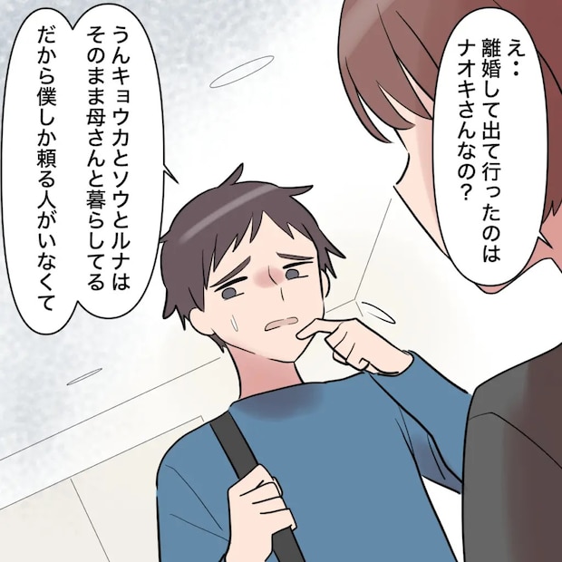 「離婚して出て行ったのはナオキさんなの?」本来なら義実家を離れるのはキョウカさんのはずなのに・・・小さな子どもがいる事を思えば仕方ないのかもしれない、この時はそう思いました。「キョウカたちはそのまま母さんと暮らしてる、だから僕しか頼る人がいなくて」困ったように説明するトモヤ。その状況ならトモヤに助けを求めたくなるのも頷けます、だけど・・・。