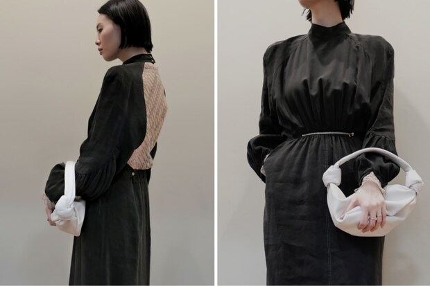ドレス¥86,900※4月上旬ごろ入荷予定(フォトコピュー/伊勢丹新宿店 本館3階 リ・スタイル)、noir kei ninomiyaのトップス、BOTTEGA VENETAのバッグ、Maison Margielaのシューズは本人私物