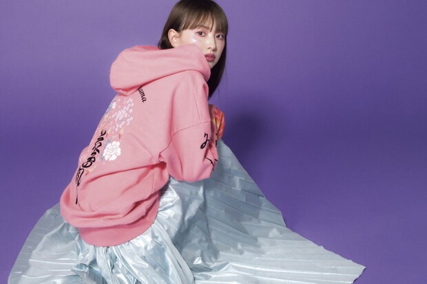 ケイタマルヤマの人気アイテムのひとつ、フーディの新作は、花鳥風月を大胆な刺繍とプリントで表現した1着。トレンドのシャイニーなプリーツスカートと合わせて、あえてフェミニンなテイストとのコントラストを楽しんで。ピンクの他、グリーン、サックスブルーと気分の上がる春らしいカラーが揃う。