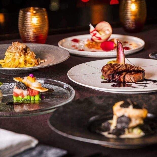 最上階の扉を開けた瞬間、東京タワーが“目の前”に迫るような圧巻ビュー。夜景に包まれて過ごす時間は、クリスマスデートの感動をさらに高めてくれる。店内は華やかなイタリアン、会席や寿司・天ぷらなどの和食、そして大人の贅沢を楽しめるBARの3エリア構成。とくにイタリアンディナーが人気で、黒トリュフや黒毛和牛など厳選食材が揃えられた。