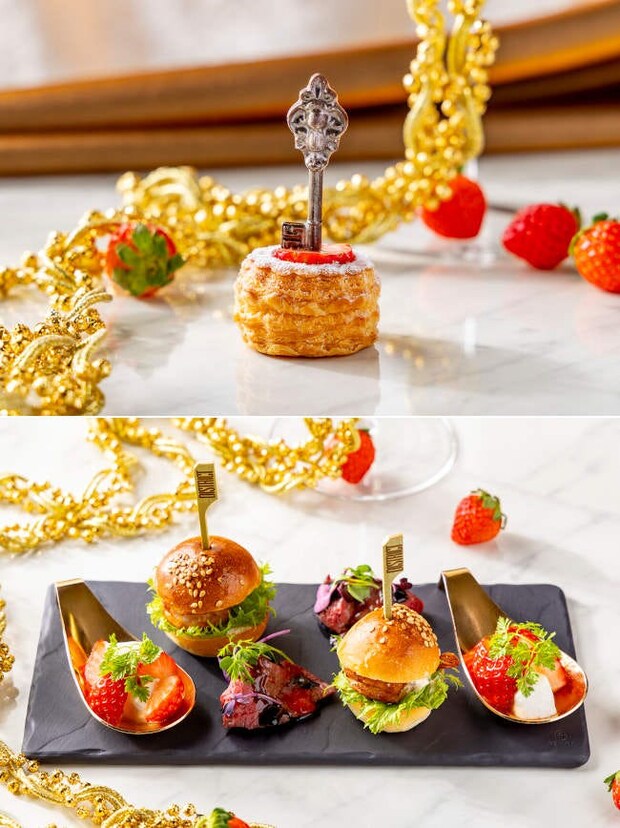 また、セイボリーにもいちごをふんだんに使用。「牛肉の低温調理・ストロベリーソース」や「ストロベリー&モッツァレラ・ホワイトバルサミコ」など、ホテル仕様の季節限定セイボリー3種をじっくりと堪能しよう。