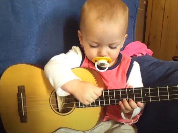 注目を集めたのは「Baby Singing and Playing Ukulele」という動画。映し出されたのは、くりくりした大きな目がかわいらしい女の子です。最初はおしゃぶりをくわえながらウクレレを触っていましたが、おもむろにおしゃぶりを口から取り出します。「うぁいあい」と何かを語りながらカメラを見てニヤリ。既にミュージシャンのような風格が漂っています。