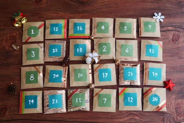 簡単な袋に番号を書いてお菓子や小物を入れて吊るすだけでも、クリスマスへの期待が一気に高まります。