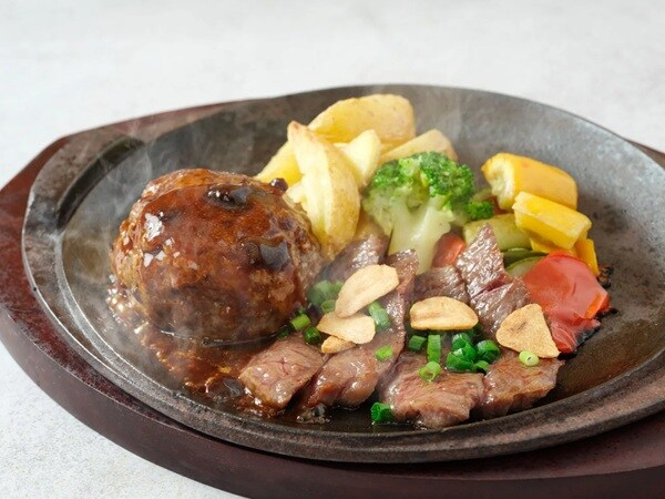 「黒毛和牛ハンバーグ&ハラミカットステーキ」2,380円(税込)は、人気の黒毛和牛ミニハンバーグのミニサイズに、旨みがギュッと詰まったハラミのカットステーキを添えた、肉好きの心を満たす人気メニュー。ソースは定番のデミグラスをはじめ、数種類からチョイス可能。12月いっぱいは、ライスorバゲット+サラダ+スープが付いた特価セット1,980円(税込)が毎日数量限定で楽しめる特別企画も実施中だ。