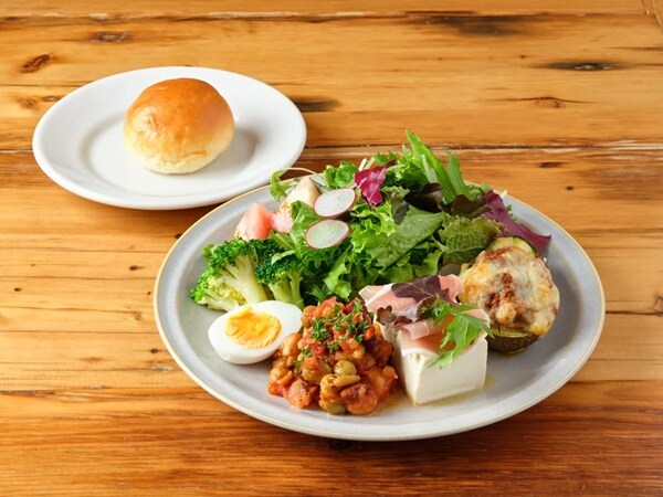 「カスタムサラダ・デリプレート」1,680円(税込)は、メインデリ1種+サイドデリ2種を自由に組み合わせ可能。定番デリから旬の素材を使った季節メニューまで常時数種類が用意されているので、選ぶのも楽しい一皿だ。スープと、ライスまたはパンがセットになっているので、バランスよく満足感も得られる。今後は多摩地区の食材も取り入れ、地域に寄り添ったプレートへ進化予定だ。