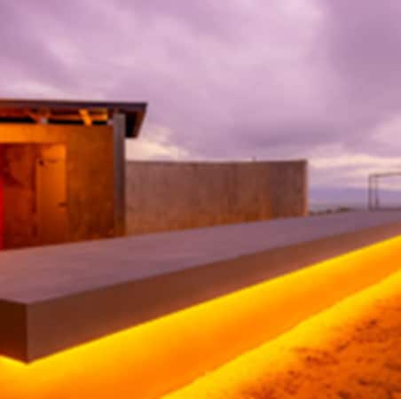 海と空と人がひとつに溶け合う舞台として作られた「ICHI」は、塀に囲まれた扉を開けると日本海へと続くコンクリートの道が“花道”のように、訪れる人を雄大な海の間近にまで導く。