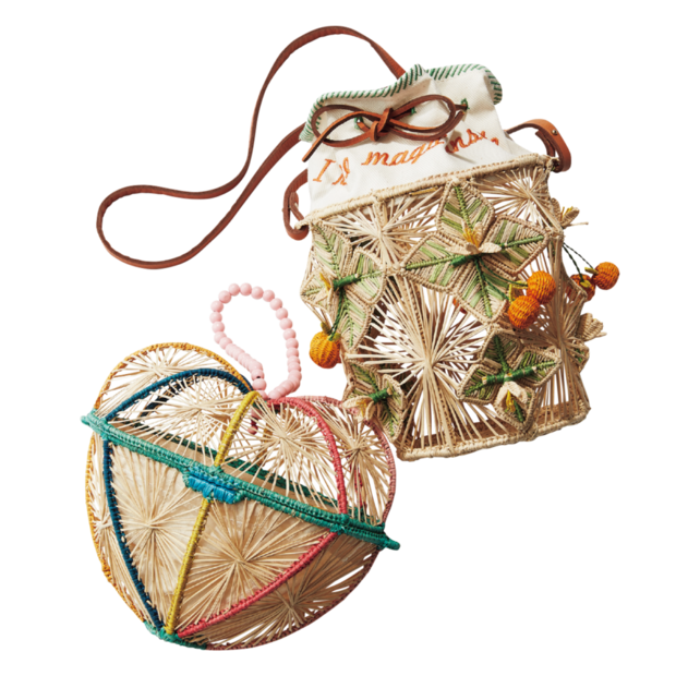上から:カゴバッグ[H18×W13×D13㎝]¥123,200、ハート形カゴバッグ[H20×W24×D12㎝]¥70,400(共にメルセデス・サラザール/ズットホリック)