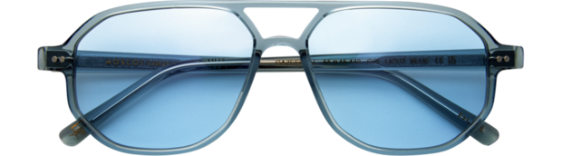 レンズ部分は角度によって色が変わるオーロラカラー。横に平たいフォルムも今っぽい。サングラス¥44,000、シャツ¥40,700(共にアワー レガシー/エドストローム オフィス)