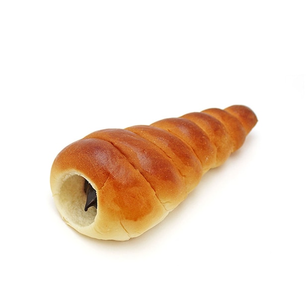巻貝の形の昔ながらのパンにチョコレートクリームを詰めた定番商品。