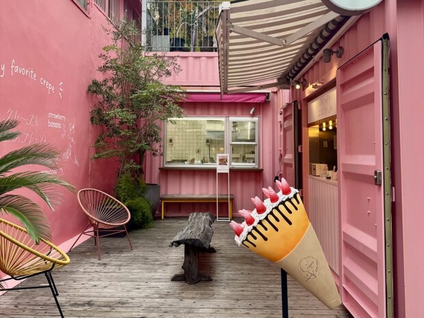 〈フォトジェニックなピンク空間に“たこやき風クレープ”登場〉