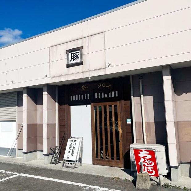 飯塚市頴田、「中華そば麺すけ」などのテナントの並びにある「豚トンジロー」。