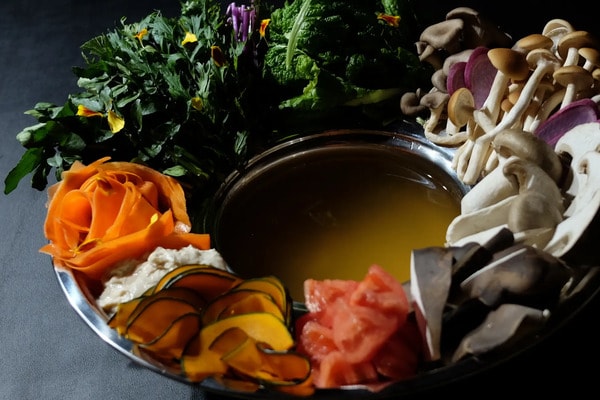 また、コース全体が完全植物性で、グルテンフリー・ハラル対応も可能可能。食文化・宗教・健康上の理由を問わず、誰もが安心して楽しめるインクルーシブ設計となっており、食事制限のあるゲストとも同じ鍋を囲めるよう、あえて“分けない”スタイルが採用されている。