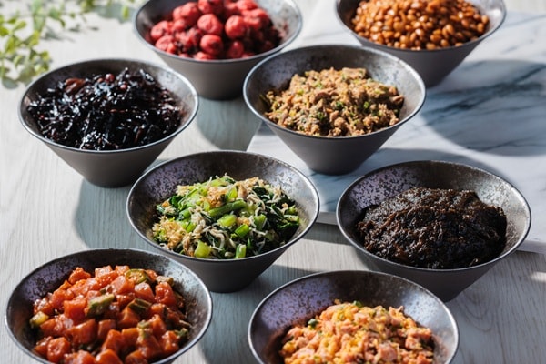 その6「究極のご飯のお供15選(和朝食)」は、街の珍味から定番のお漬物まで、ご飯が進む15種のおかずを厳選。金沢では『能登牛のそぼろ』『のどぐろの時雨煮』が、神戸では『淡路島産玉ねぎ梅しそ漬け』『淡路産のしそわかめ』など、ご当地ブランド米と相性抜群な郷土の味が季節ごとに登場する。